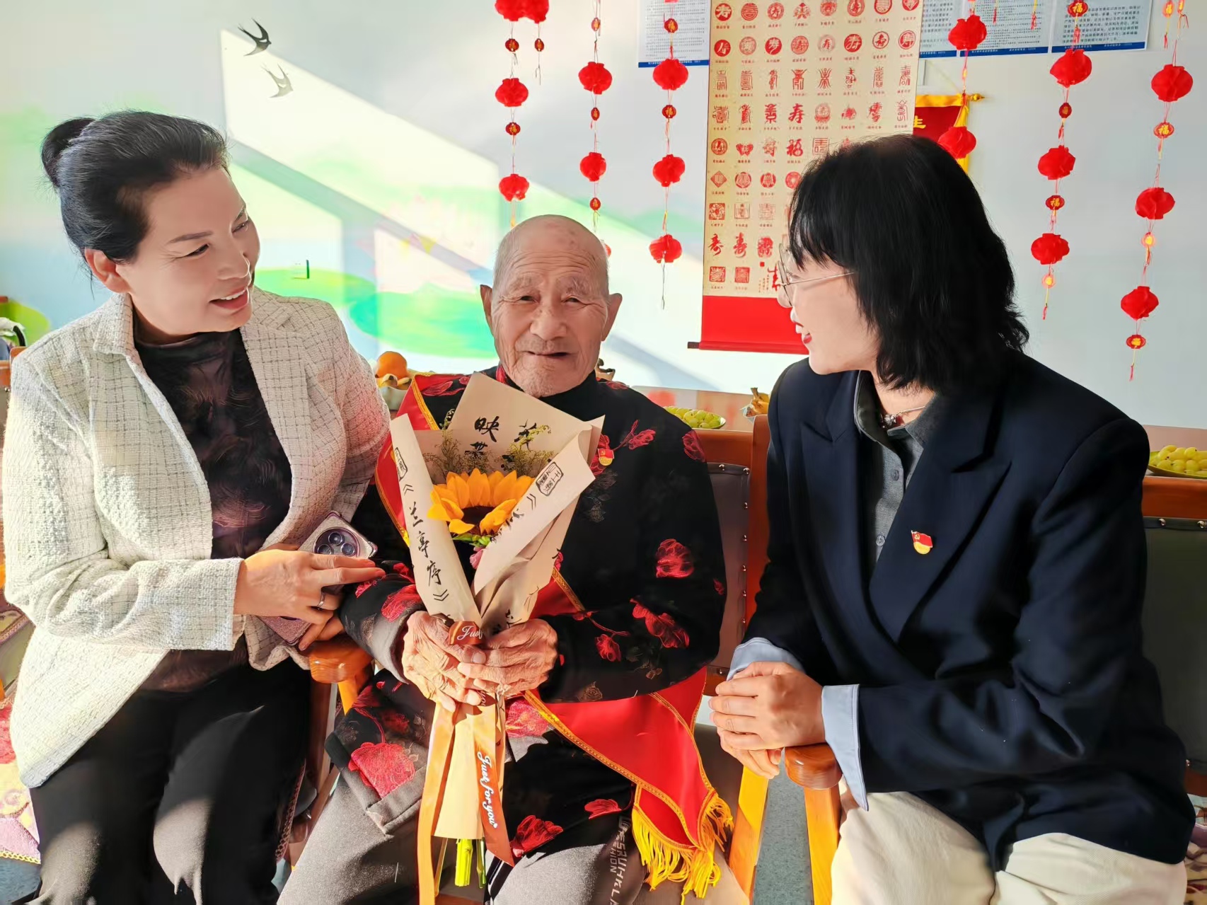 六師奇臺110社區(qū)吾家樂寶養(yǎng)老院--- 百歲老人李文生在祝福中喜度期頤之壽
