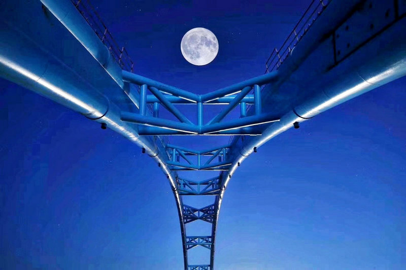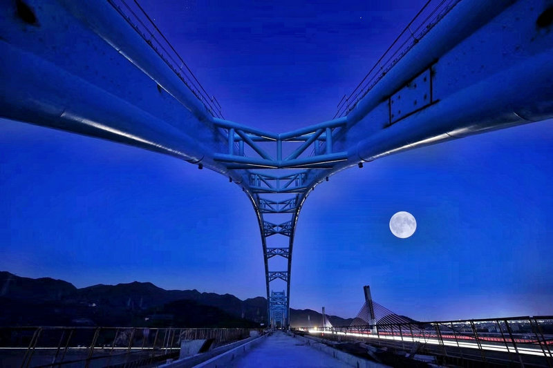 9月,秋意愈濃,清晨的日出及夜晚的月色撒在金臺(tái)鐵路靈江特大橋上,與自然融為一體,磅礴之余又多了些柔美、靜謐。