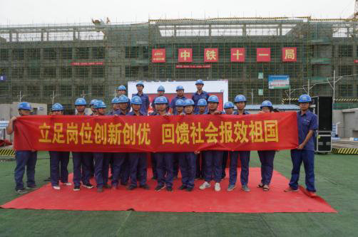 做承諾環(huán)節(jié),公司黨委副書記、工會主席趙小紅、項目經(jīng)理劉磊、書記李雁帶領(lǐng)項目員工紛紛在“銘記崢嶸歲月,爭做大國棟梁”的紅色橫幅上簽名,寫下莊嚴(yán)承諾。隨后,正式啟動“大干四季度勞動競賽活動”儀式,項目總工程師江永宣讀勞動競賽節(jié)點計劃,項目黨工委書記李雁宣讀大干四季度勞動競賽倡議書,項目經(jīng)理劉磊代表項目部進行表態(tài),趙主席向青年突擊隊代表授旗,號召項目全體員工要確保項目建設(shè)目標(biāo)順利完成,為下半年施工大干奠定堅實基礎(chǔ)。