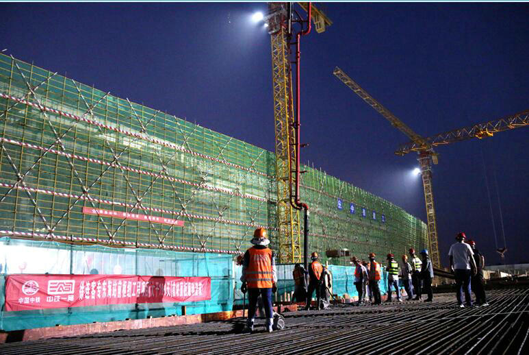 7月10日早6時30分,在東海站前樞紐工程項目部現(xiàn)場管理人員和施工人員的共同努力下,歷經(jīng)12個小時,順利完成了首塊頂板混凝土澆筑施工,標(biāo)志著東海站前樞紐工程主體結(jié)構(gòu)各道工序全面展開。