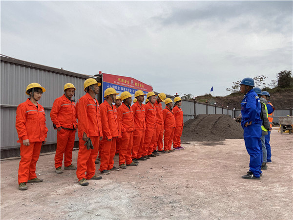 圖:12月26日早上,現(xiàn)場人員正在開工前講話,安排當(dāng)天的主要工作和提醒安全操作注意事項。董志剛攝