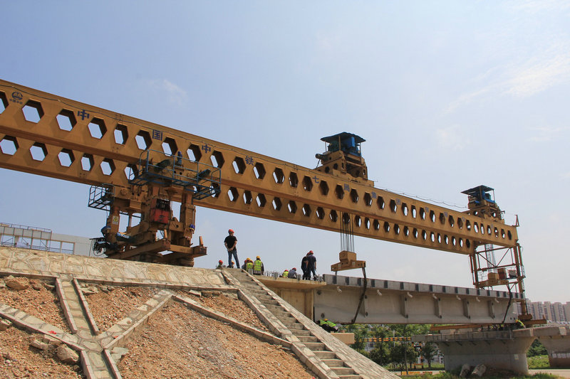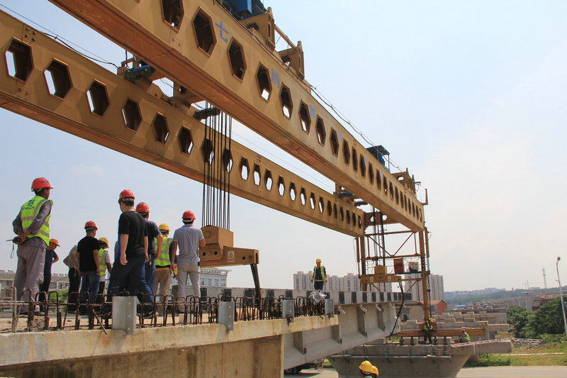 在新港江北鐵路繞城特大橋頭,這里艷陽(yáng)高照,三十多名施工人員奮戰(zhàn)于此,工地上一派繁忙景象。據(jù)施工現(xiàn)場(chǎng)負(fù)責(zé)人趙建平介紹,首片T梁從制作到養(yǎng)護(hù)完成共需要10天,端午節(jié)前就做好了各項(xiàng)準(zhǔn)備工作,節(jié)后一開(kāi)工,他們便立即投入到了緊張施工之中,本次T梁架設(shè)架設(shè)僅用時(shí)50分鐘,整個(gè)起吊、推送、橫移、落梁、就位動(dòng)作一氣呵成,工序銜接順利,歸功于前期項(xiàng)目部的精心組織,細(xì)心安排,才保證了架設(shè)全過(guò)程安全、平穩(wěn)、有序、可控。