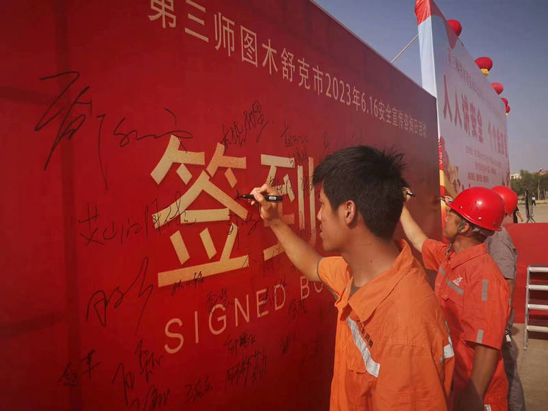 圖木舒克訊(通訊員 曾雷)6月16日,是全國(guó)第20個(gè)“安全生產(chǎn)宣傳咨詢?nèi)?rdquo;,為積極響應(yīng)第三師圖木舒克市安全生產(chǎn)委員會(huì)號(hào)召,北新路橋集團(tuán)圖昆公路二標(biāo)項(xiàng)目部與第三師交通運(yùn)輸局聯(lián)合參加安全生產(chǎn)宣傳咨詢?nèi)栈顒?dòng)。