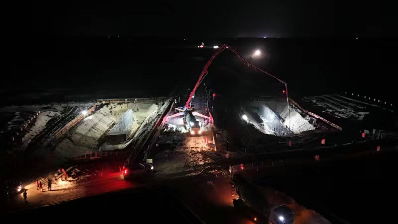 為保證施工質(zhì)量和澆筑任務順利完成,項目部堅持質(zhì)量與安全并重、技術與施工并行,認真編制混凝土施工專項方案并做好安全技術交底,嚴格把關承臺施工每道工序,全程盯控承臺施工綁鋼筋、立模板等各個環(huán)節(jié)。同時成立混凝土澆筑工作小組,采取錯峰施工,避開白天高溫天氣,主要集中在下午8點到第二天早上6點澆筑混凝土,實現(xiàn)了項目部、砼拌和站和作業(yè)隊分工協(xié)作、緊密聯(lián)動、默契配合,確保混凝土拌制、運輸、澆筑各個工序高效銜接。