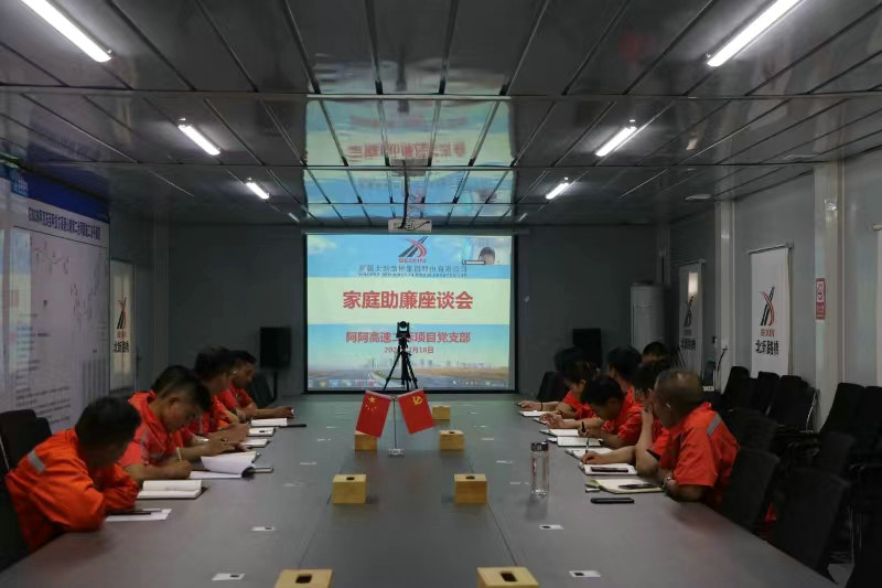 為抓實(shí)開展第26個(gè)黨風(fēng)廉政建設(shè)月活動,發(fā)揮好家庭在黨風(fēng)廉政建設(shè)和反腐敗斗爭中的重要作用,營造家風(fēng)好、黨風(fēng)正、政風(fēng)清的良好氛圍,7月12日,阿阿高速二標(biāo)項(xiàng)目黨支部開展主題為把好廉潔關(guān)、當(dāng)好廉內(nèi)助、守住幸福門家庭助廉座談會活動,支部班子成員、項(xiàng)目經(jīng)營、各部門負(fù)責(zé)人及家屬17人參加座談會。